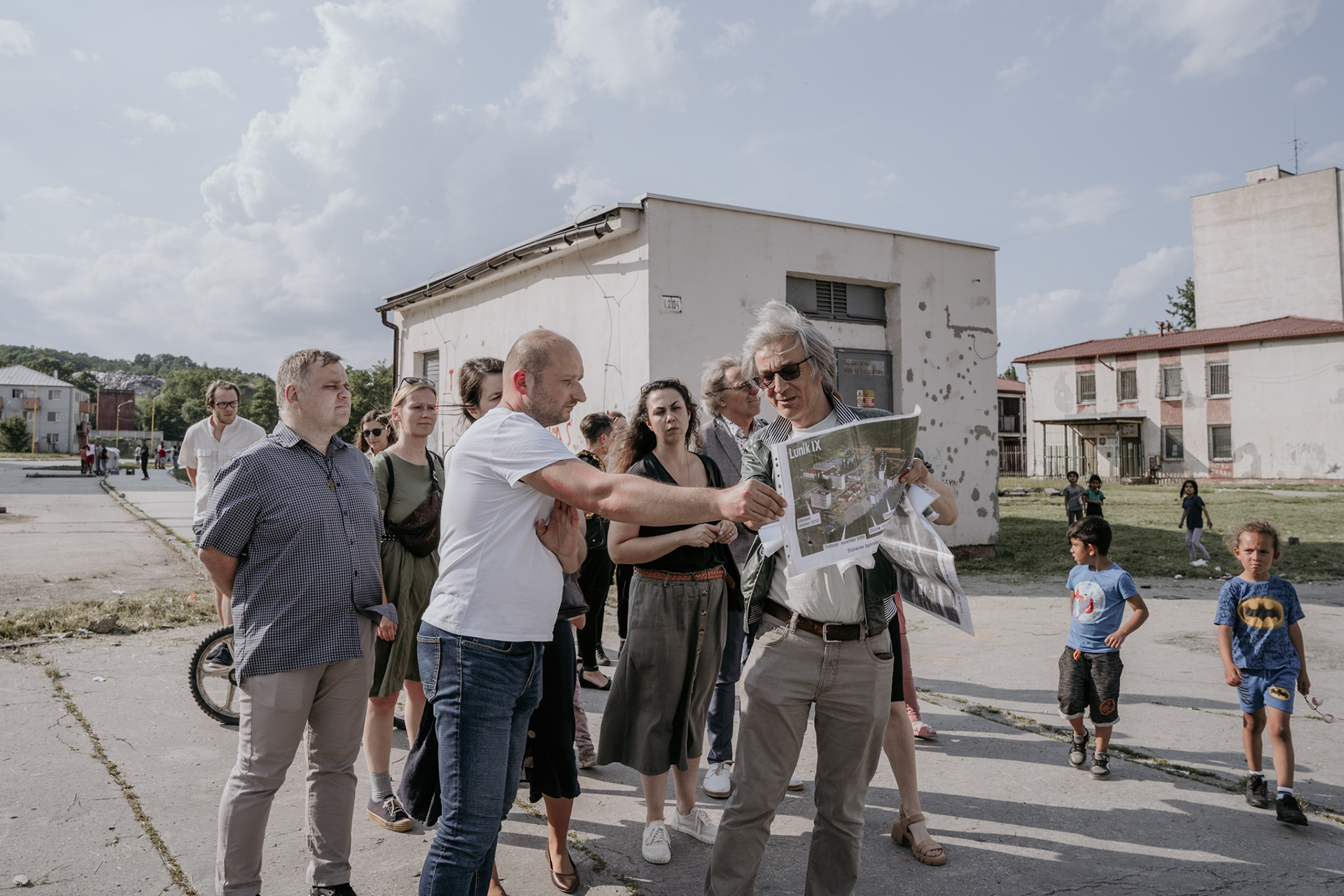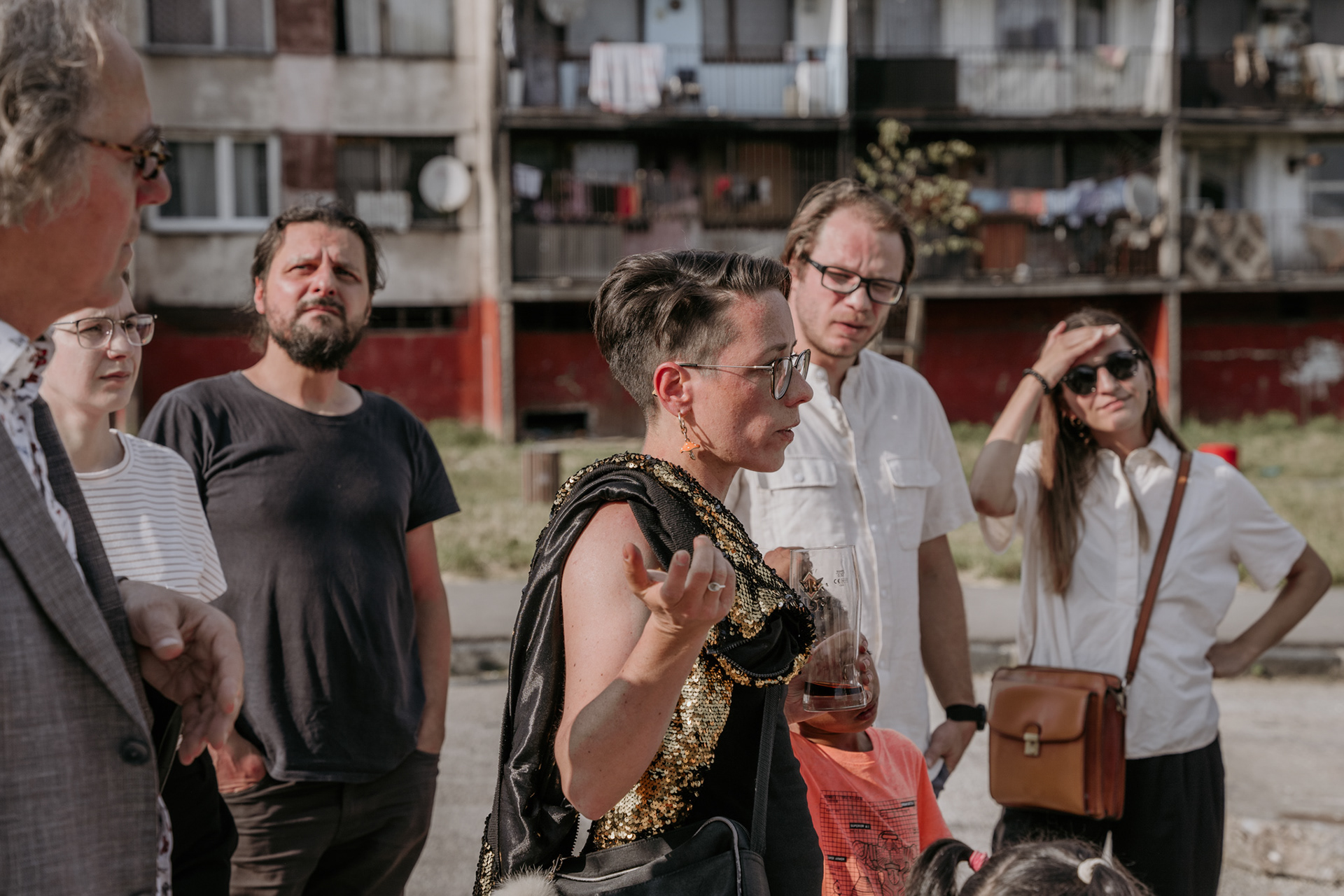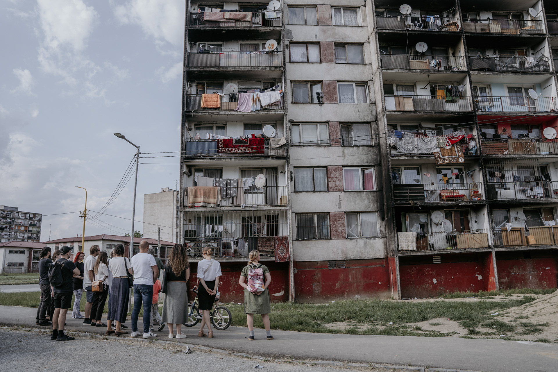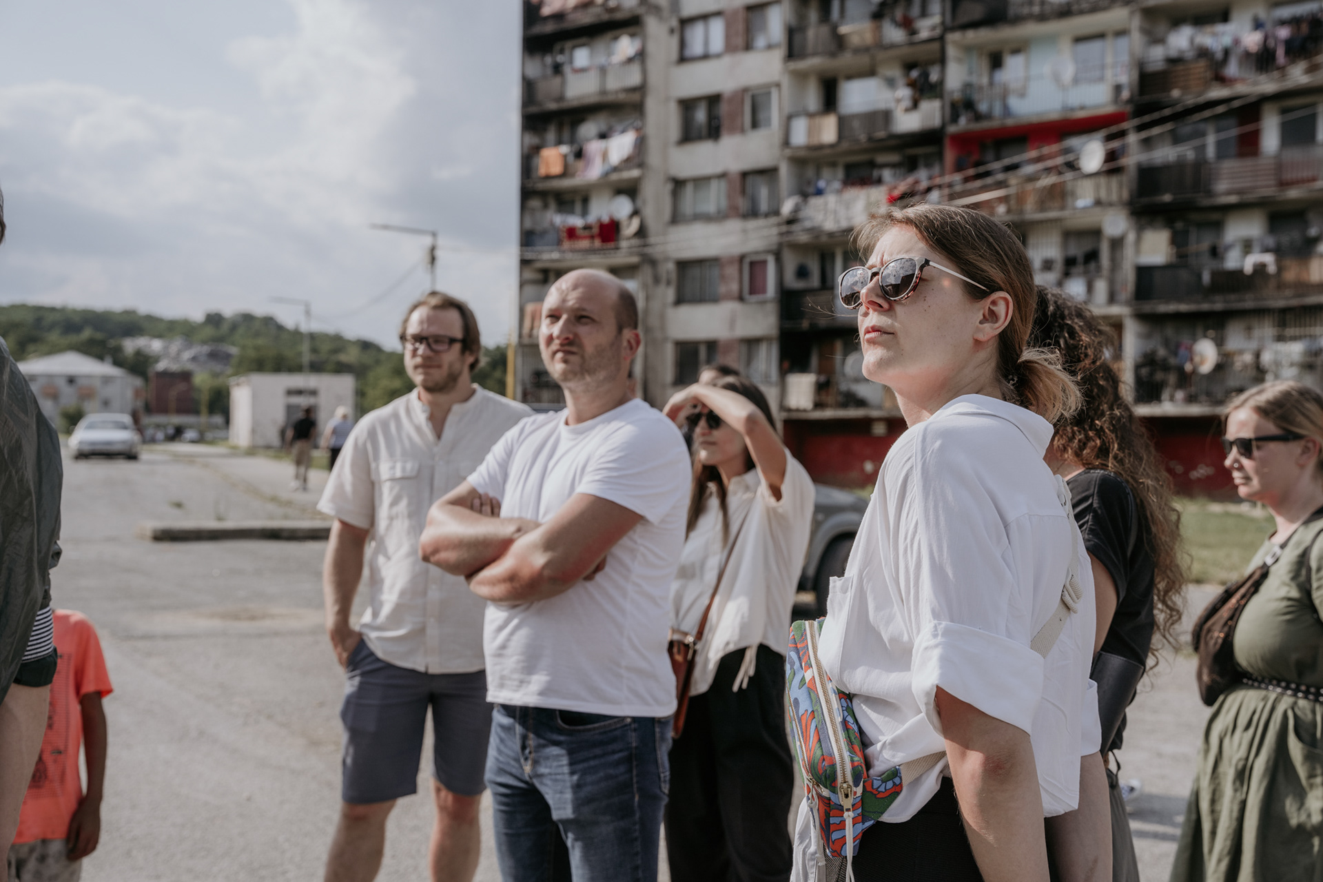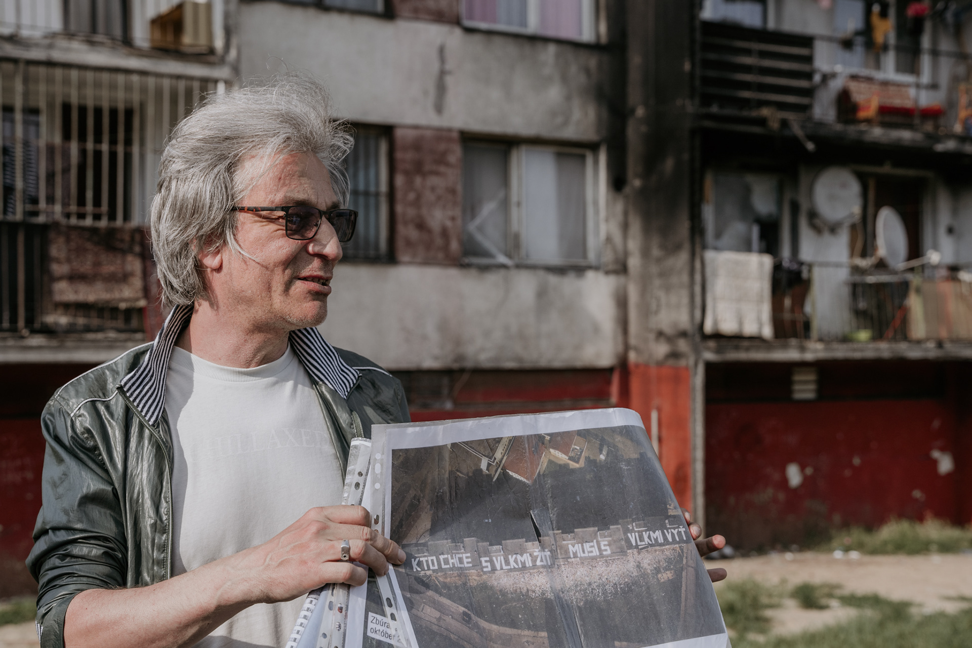 Guided tour of Luník IX, Košice - Slovakia. Guided by Milan Kolcun. The commented tour was part of the accompanying program to the House of the Project: of mine, thanks to which the East Slovak Gallery tries to connect the majority society with vulnerable groups, create new relationships and friendships, and bring contemporary art to existing and new groups of visitors.